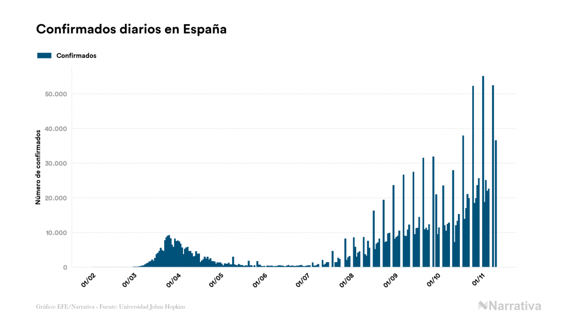 El número de casos confirmados de contagio por COVID-19 alcanza ya las 52.208.424 personas a nivel mundial, de las cuales 33.855.578 ya se han recuperado. EE.UU. concentra el mayor número de casos con 10.402.274, seguido de India, Brasil y Francia con 8.683.916, 5.747.660 y 1.914.919 casos cada uno.