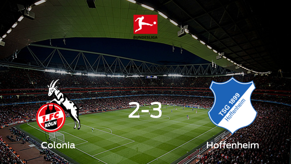 Hoffenheim ganó en el feudo de Colonia por 3-2 el partido que iniciaba su andadura en la Bundesliga, celebrado este sábado en el RheinEnergieStadion. Tras el resultado obtenido, el equipo de Sinsheim es cuarto con tres puntos al concluir el duelo y Colonia decimocuarto sin puntos en el casillero tras el encuentro.