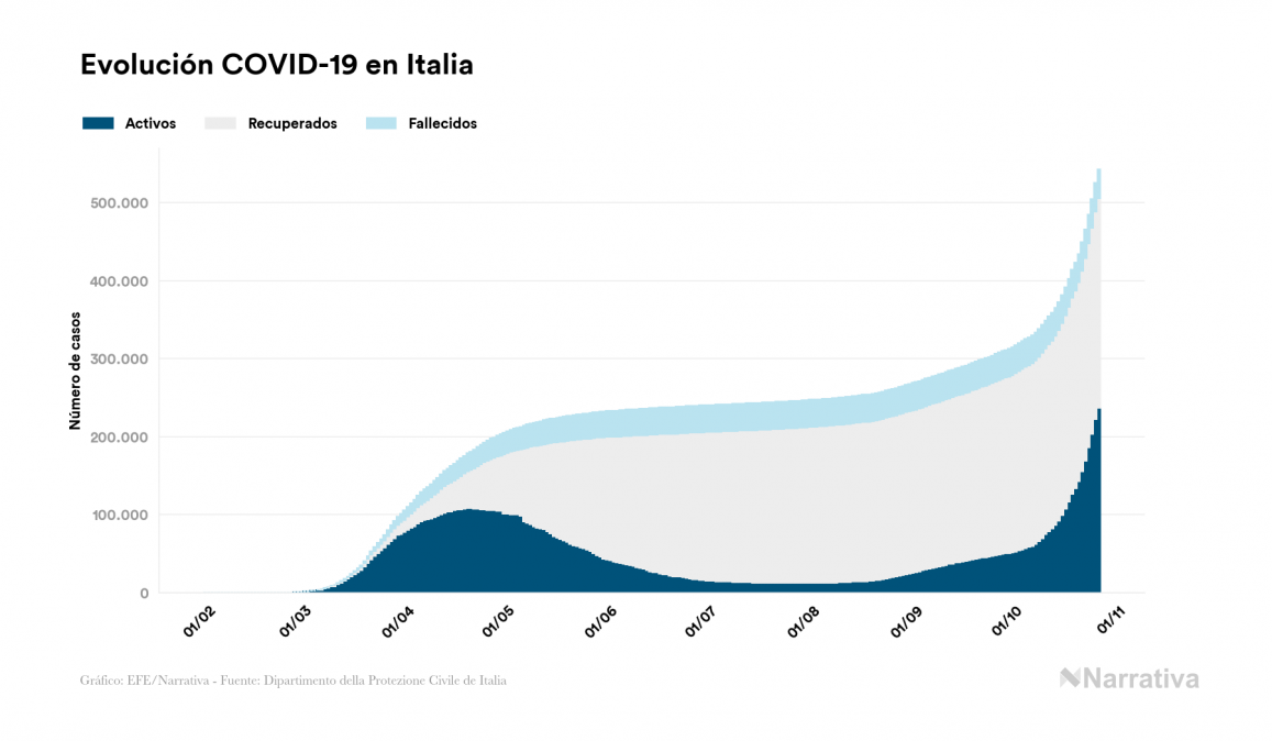 Desde su aparición, el número de fallecidos a nivel mundial se sitúa actualmente en 1.160.389 personas, a las que se suman 2.234 desde el último recuento de víctimas. EE.UU. es el país con mayor número de víctimas hasta el momento con 225.739 personas fallecidas, seguido de Brasil, India y México con 157.397, 119.502 y 89.171 fallecimientos respectivamente.