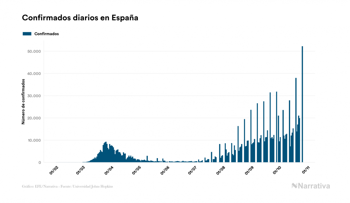 En las últimas 24 horas se han reportado 204.387 nuevos positivos en coronavirus, lo que supondría un incremento del 0,47% con respecto al total de contagios del pasado informe. España es el país que más nuevos contagios ha confirmado con 52.188, seguido de Francia tras informar de 36.897 nuevos pacientes. A éstos les acompañan Italia con 17.007 nuevos pacientes y Rusia tras reportar 16.342 nuevos contagios en el país.