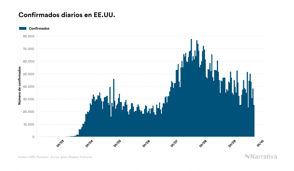 El número de casos confirmados de contagio por COVID-19 alcanza ya las 31.230.794 personas a nivel mundial, de las cuales 21.348.063 ya se han recuperado. EE.UU. concentra el mayor número de casos con 6.858.010, seguido de India, Brasil y Rusia con 5.562.663, 4.558.040 y 1.111.157 casos cada uno.