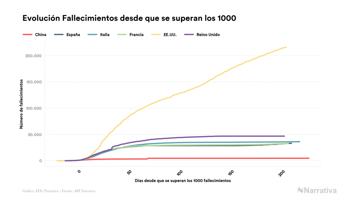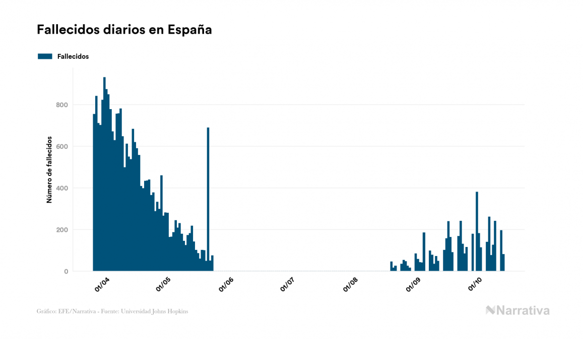 Desde su aparición, el balance global de fallecidos por coronavirus a nivel mundial es de 1.086.913 personas, a las que se suman 2.548 desde el último informe. EE.UU. es el país con mayor número de víctimas hasta el momento con 215.910 muertes, seguido de Brasil, India y México con 150.998, 110.586 y 84.420 fallecimientos respectivamente.