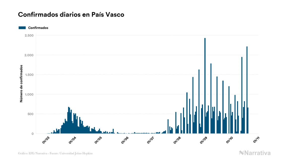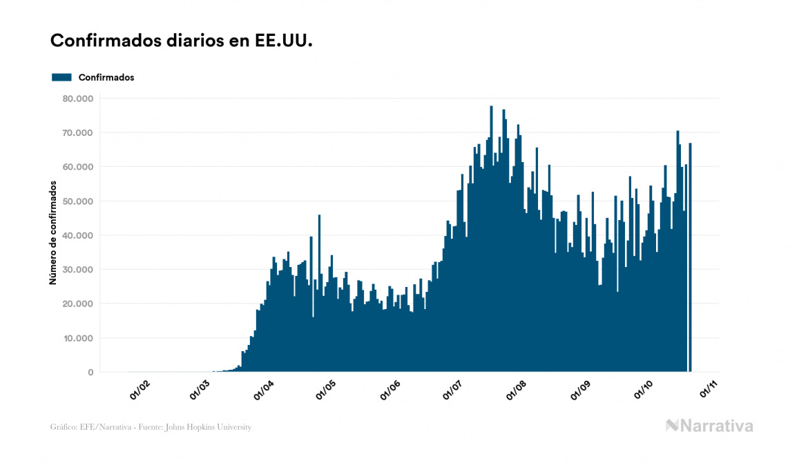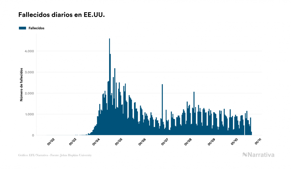 En total, el número de fallecidos a nivel mundial se sitúa actualmente en 1.125.649 personas, a las que se suman 2.682 desde el último recuento de víctimas. EE.UU. es el país que ha registrado una mayor cantidad hasta el momento con 221.078 muertes, seguido de Brasil, India y México con 154.837, 115.914 y 86.893 fallecimientos respectivamente.