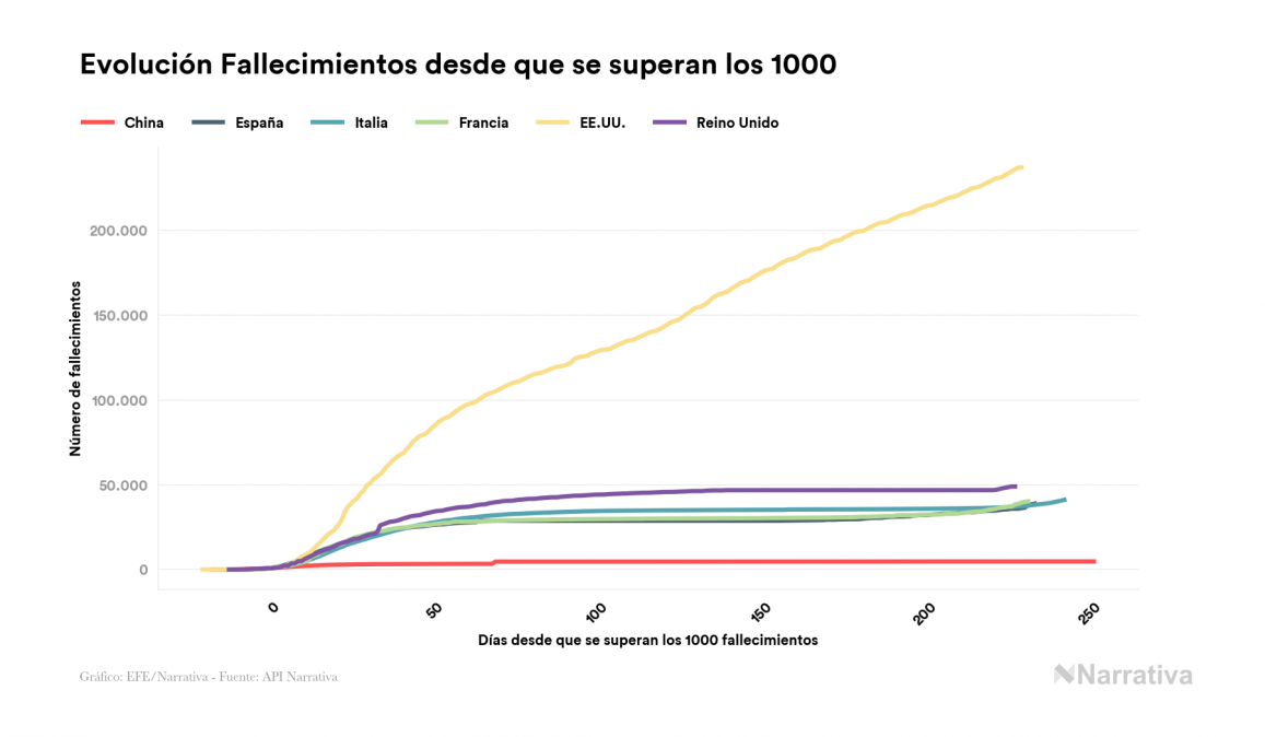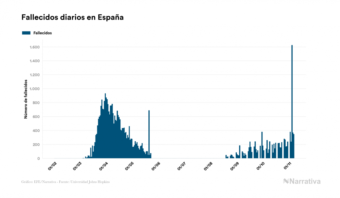 Desde su aparición, el balance global de fallecidos por coronavirus a nivel mundial es de 1.251.540 personas, a las que se han sumado 2.997 desde el último recuento de víctimas. EE.UU. es el país con mayor número de víctimas hasta el momento con 237.123 personas fallecidas, seguido de Brasil, India y México con 162.269, 126.121 y 94.808 fallecimientos respectivamente.