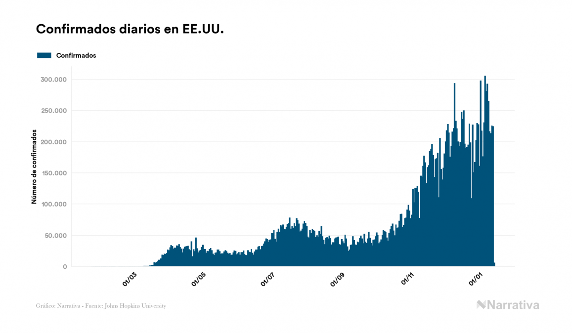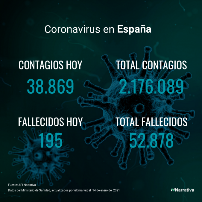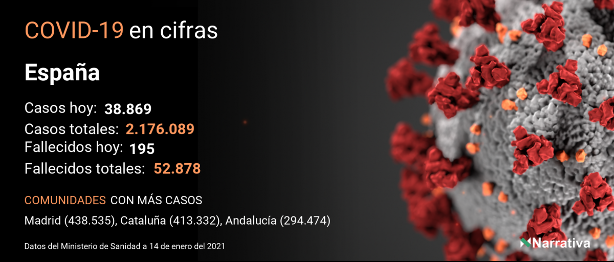 El número de casos confirmados de contagio por COVID-19 alcanza ya las 92.431.094 personas a nivel mundial, de las cuales ya se han recuperado 60.101.629. EE.UU. concentra el mayor número de casos con 23.077.435, seguido de India, Brasil y Rusia con 10.512.093, 8.256.536 y 3.459.237 casos cada uno.