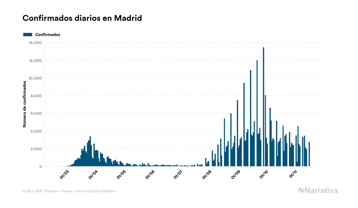 En total, el número de fallecidos a nivel mundial se sitúa actualmente en 1.328.685 personas, a las que se han sumado 3.114 desde el último informe. EE.UU. es el país que ha registrado una mayor cantidad hasta el momento con 247.229 personas fallecidas, seguido de Brasil, India y México con 166.014, 130.519 y 98.861 fallecimientos respectivamente.