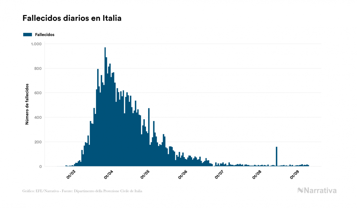 En total, el número de fallecidos a nivel mundial se sitúa actualmente en 898.200 personas, a las que se suman 3.116 desde el último informe. EE.UU. es el país que ha registrado una mayor cantidad hasta el momento con 191.791 personas fallecidas, seguido de Brasil, India y México con 129.522, 76.271 y 69.649 fallecimientos respectivamente.