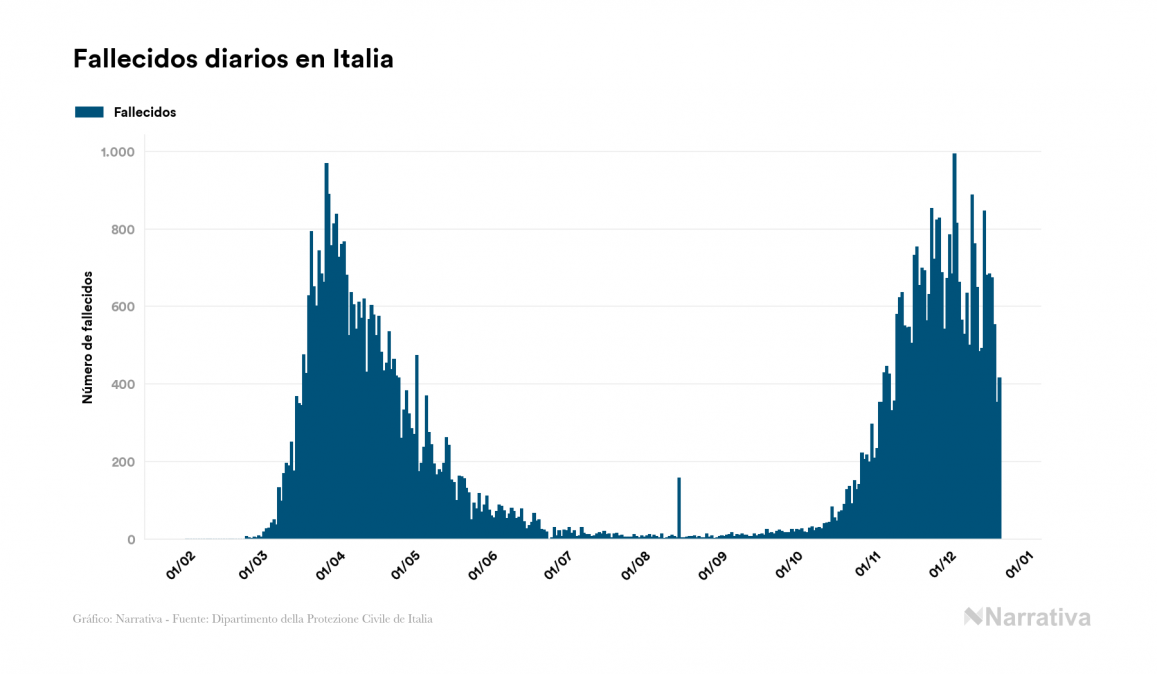 En total, el número de fallecidos a nivel mundial se sitúa actualmente en 1.704.721 personas, a las que se suman 3.439 desde el último informe. EE.UU. es el país que ha registrado una mayor cantidad hasta el momento con 319.466 muertes, seguido de Brasil, India y México con 187.291, 146.151 y 118.598 fallecimientos respectivamente.