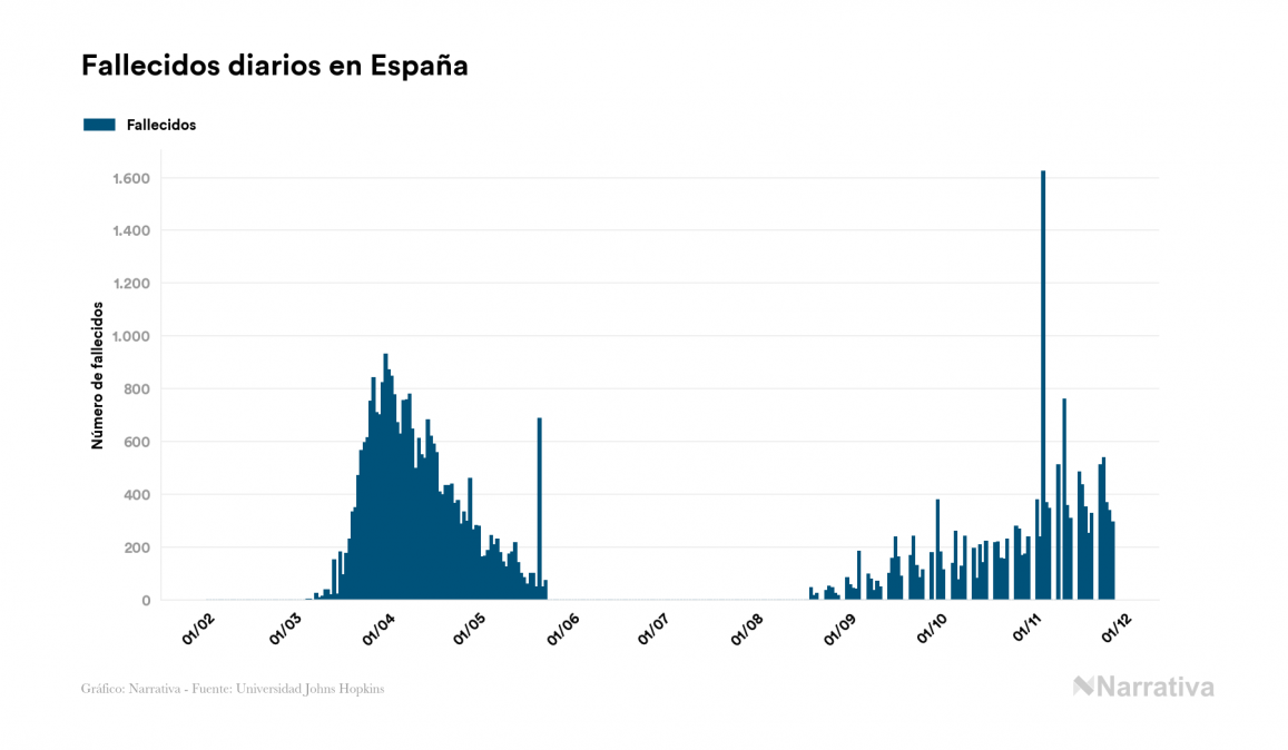 Desde su aparición, el balance global de fallecidos por coronavirus a nivel mundial es de 1.454.012 personas, tras sumarse 3.605 nuevas muertes en el último recuento. EE.UU. es el país con mayor número de víctimas hasta el momento con 266.074 muertes, seguido de Brasil, India y México con 172.561, 136.737 y 105.459 fallecimientos respectivamente.