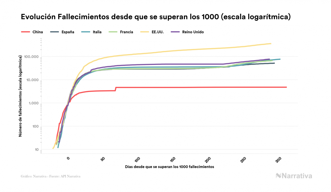 Desde su aparición, el número de fallecidos a nivel mundial se sitúa actualmente en 1.870.857 personas, a las que se han sumado 3.636 desde el último informe. EE.UU. es el país con mayor número de víctimas hasta el momento con 357.385 muertes, seguido de Brasil, India y México con 197.732, 150.155 y 128.822 fallecimientos respectivamente.