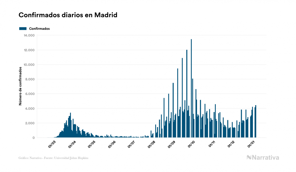El número de casos confirmados de contagio por COVID-19 alcanza ya las 86.510.925 personas en todo el mundo, de las cuales 56.835.440 ya se han recuperado. EE.UU. concentra el mayor número de casos con 21.051.001, seguido de India, Brasil y Rusia con 10.374.932, 7.810.400 y 3.274.615 casos respectivamente.
