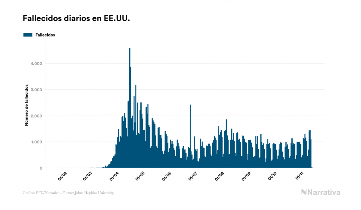 Desde su aparición, el balance global de fallecidos por coronavirus a nivel mundial es de 1.294.657 personas, tras sumarse 3.823 nuevas muertes en el último recuento. EE.UU. es el país con mayor número de víctimas hasta el momento con 242.435 muertes, seguido de Brasil, India y México con 164.281, 128.668 y 97.056 fallecimientos respectivamente.