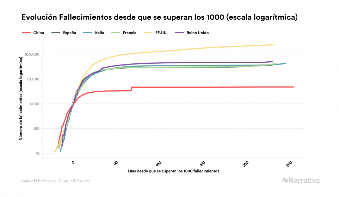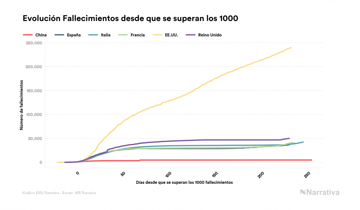 En total, el balance global de fallecidos por coronavirus a nivel mundial es de 1.273.642 personas, tras sumarse 4.049 nuevas muertes en el último recuento. EE.UU. es el país que ha registrado una mayor cantidad hasta el momento con 239.695 personas fallecidas, seguido de Brasil, India y México con 162.802, 127.571 y 95.842 fallecimientos respectivamente.
