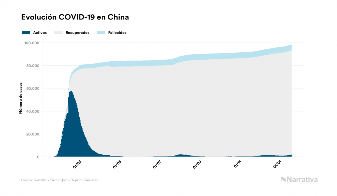 Las primeras evidencias del brote de coronavirus se produjeron en China, en la ciudad de Wuhan, el 31 de diciembre de 2019. Desde esa fecha, la infección se fue extendiendo por todo el continente asiático hasta expandirse al resto de países del mundo. En el último día, se han detectado 104 nuevos casos en el país y actualmente 2.103 personas se hallan bajo los efectos de las enfermedades que provoca el virus.
