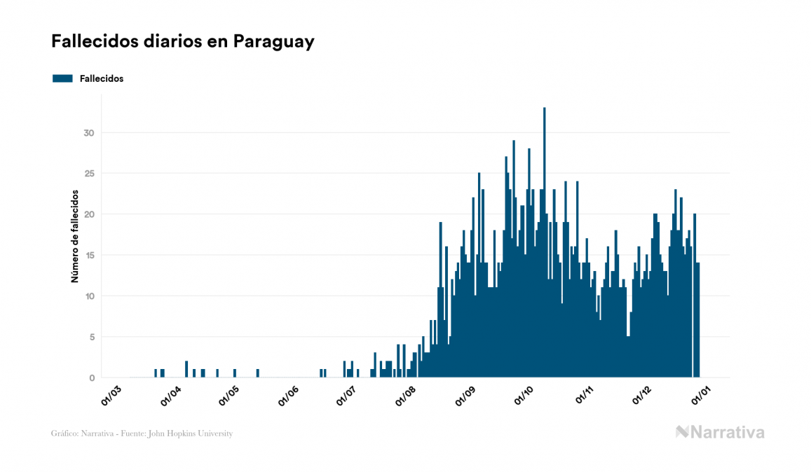 El nuevo coronavirus deja ya 105.374 casos de contagio en Paraguay, con 24.001 de ellos actualmente activos y 2.202 fallecidos, según los últimos datos correspondientes al 29 de diciembre. Además, un total de 79.171 personas ya se ha recuperado desde que se produjo el primer contagio en el país.