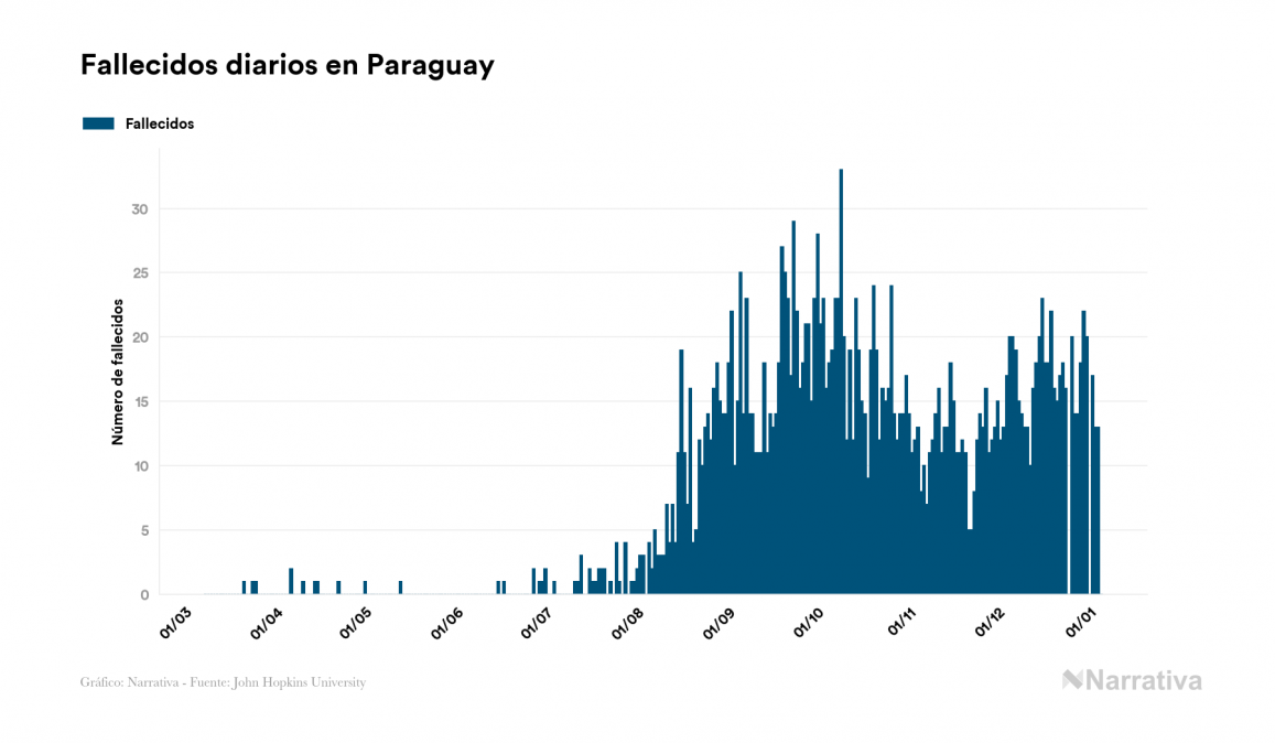 El coronavirus deja ya 109.837 casos de contagio en Paraguay, con 21.732 de ellos actualmente activos y 2.305 fallecidos, según los últimos datos correspondientes al 5 de enero. Además, un total de 85.800 personas ya se ha recuperado desde que se produjo el primer contagio en el país.