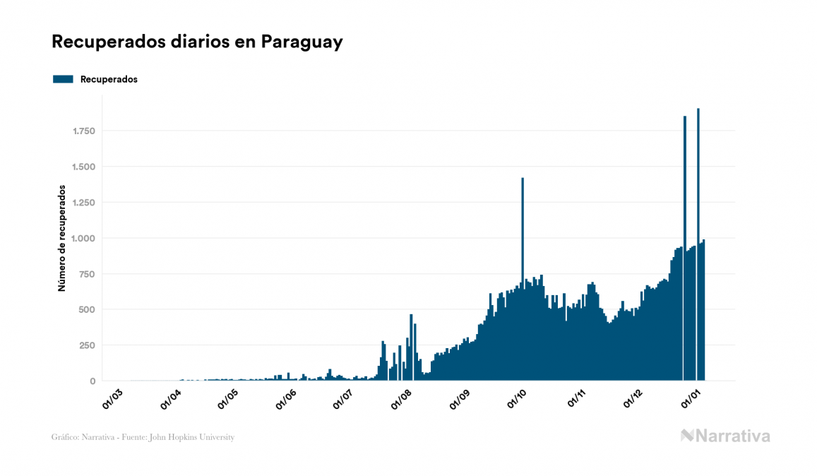 La COVID-19 deja ya 110.796 casos de contagio en Paraguay, con 21.689 de ellos actualmente activos y 2.321 fallecidos, según los últimos datos correspondientes al 6 de enero. Además, un total de 86.786 personas ya se ha recuperado desde que se produjo el primer contagio en el país.