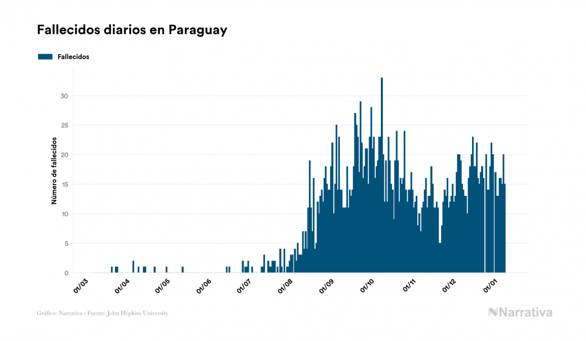 La COVID-19 deja ya 115.026 casos de contagio en Paraguay, con 22.092 de ellos actualmente activos y 2.387 fallecidos, según los últimos datos correspondientes al 10 de enero. Además, un total de 90.547 personas ya se ha recuperado desde que se produjo el primer contagio en el país.
