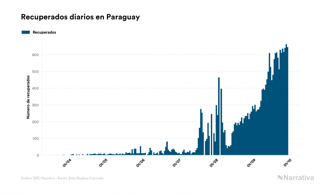 Según los últimos datos, Paraguay continúa con 15.551 casos activos de COVID-19 tras confirmarse 748 nuevos positivos y 644 altas médicas este martes. Desde el comienzo de la pandemia, el número total de contagiados asciende a 39.432, con 23.063 recuperados y 818 fallecidos.