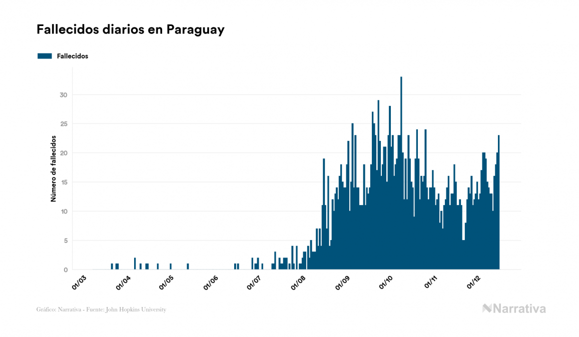 La COVID-19 deja ya 96.209 casos de contagio en Paraguay, con 25.537 de ellos actualmente activos y 2.014 fallecidos, según los últimos datos correspondientes al 17 de diciembre. Además, un total de 68.658 personas ya se ha recuperado desde que se produjo el primer contagio en el país.