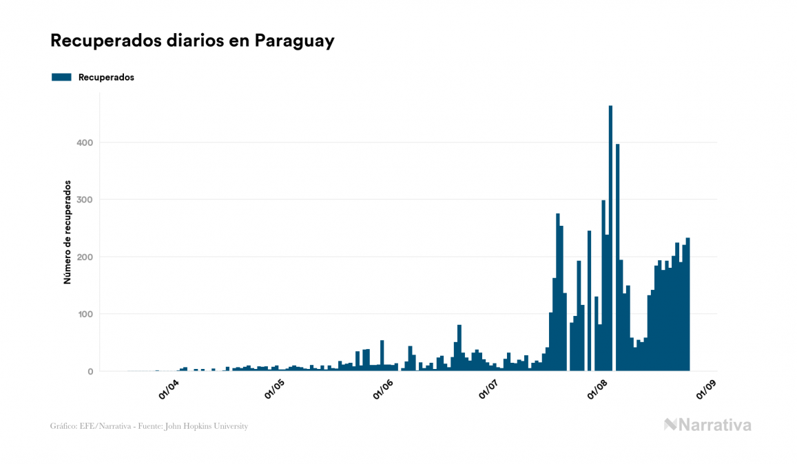 Según los últimos datos, Paraguay continúa con 5.734 casos activos de COVID-19 tras confirmarse 369 nuevos positivos y 232 altas médicas este martes. Desde el comienzo de la pandemia, la cifra total de contagiados asciende a 13.602, con 7.649 recuperados y 219 fallecidos.