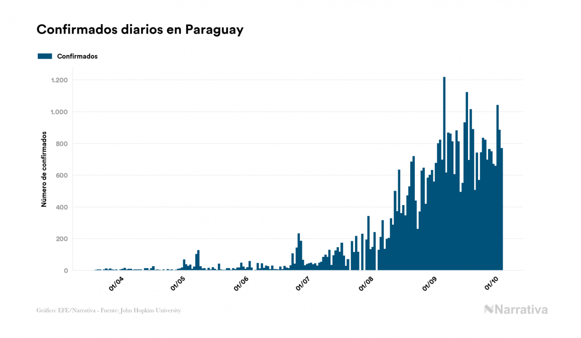 Paraguay llega a los 43.452 contagiados tras registrar 768 nuevos casos en el último día