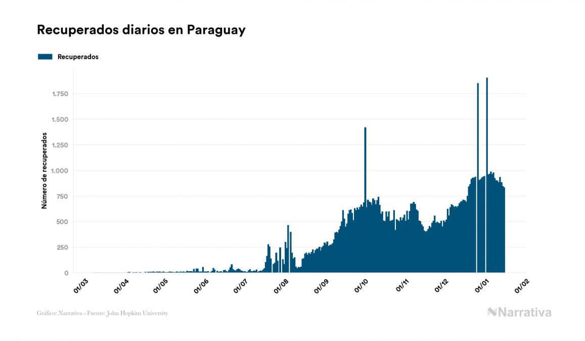 La COVID-19 deja ya 120.789 casos de contagio en Paraguay, con 22.495 de ellos actualmente activos y 2.479 fallecidos, según los últimos datos correspondientes al 16 de enero. Además, un total de 95.815 personas ya se ha recuperado desde que se produjo el primer contagio en el país.