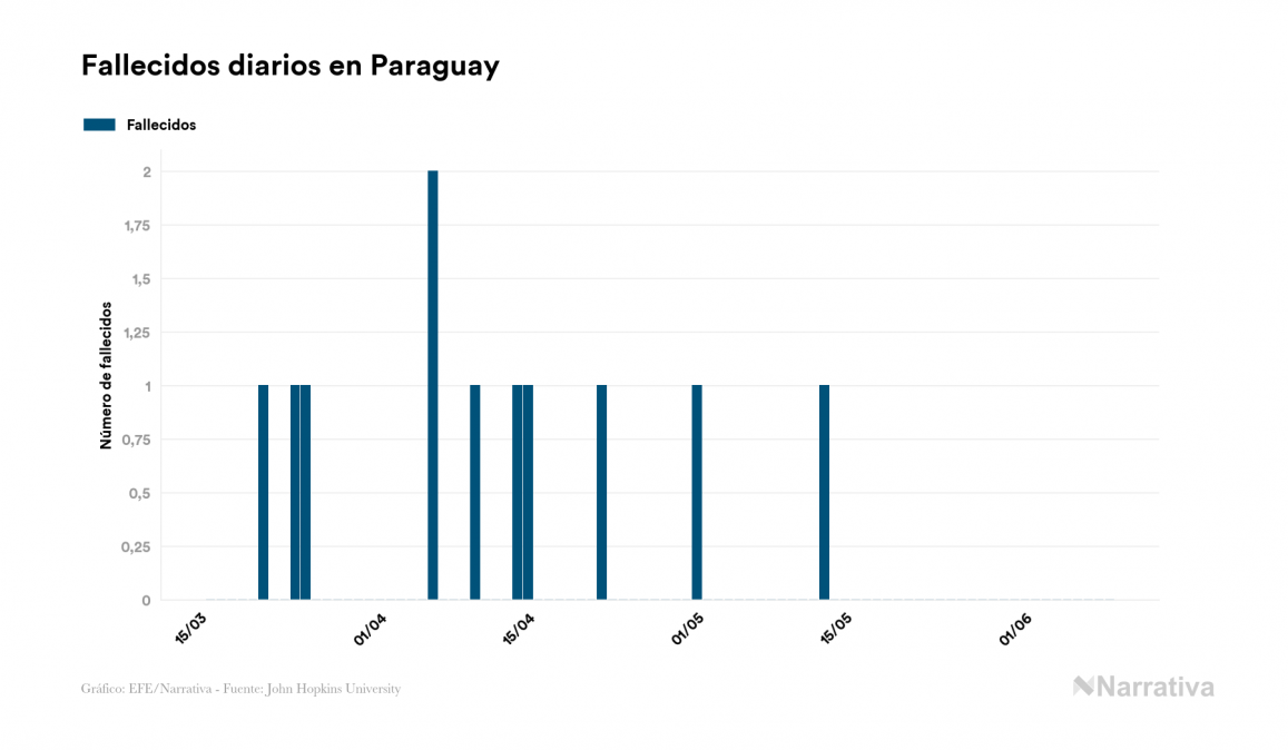 La COVID-19 deja ya 1.145 casos de contagio en Paraguay, con 531 de ellos actualmente activos y 11 fallecidos, según los últimos datos correspondientes al 9 de junio. Además, un total de 603 personas ya se ha recuperado desde que se produjo el primer contagio en el país.