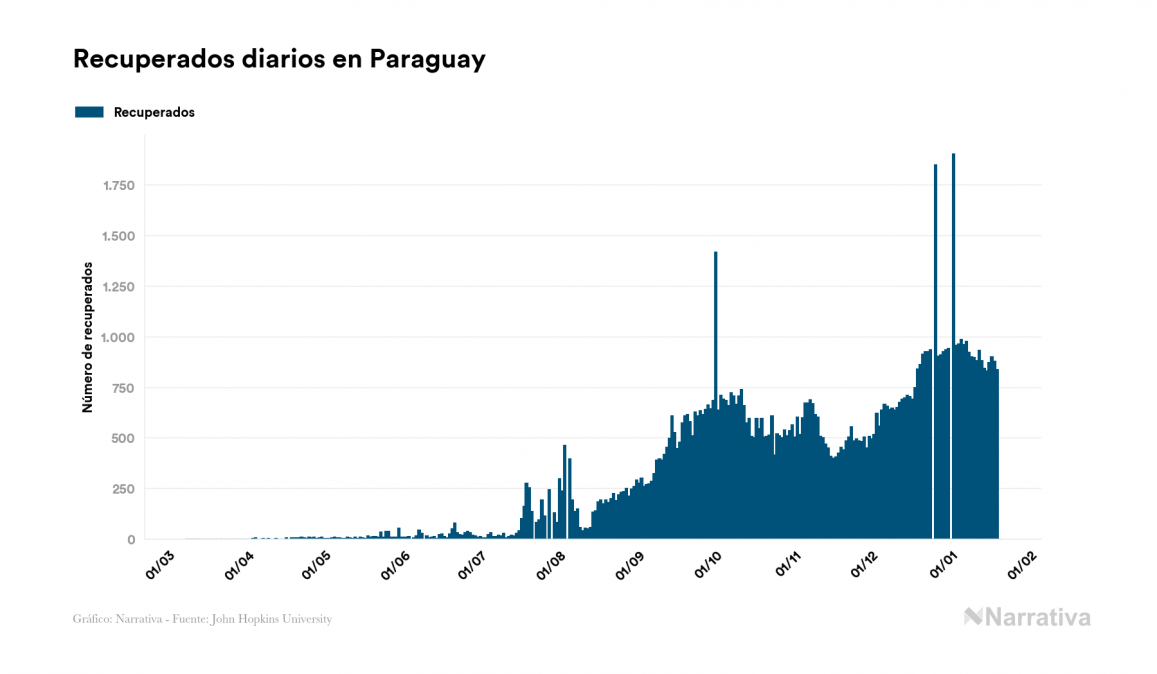 El nuevo coronavirus deja ya 123.359 casos de contagio en Paraguay, con 21.521 de ellos actualmente activos y 2.535 fallecidos, según los últimos datos correspondientes al 20 de enero. Además, un total de 99.303 personas ya se ha recuperado desde que se produjo el primer contagio en el país.