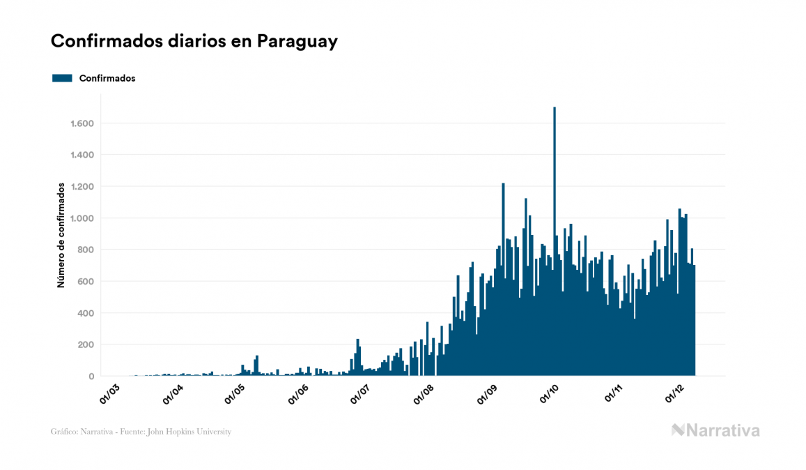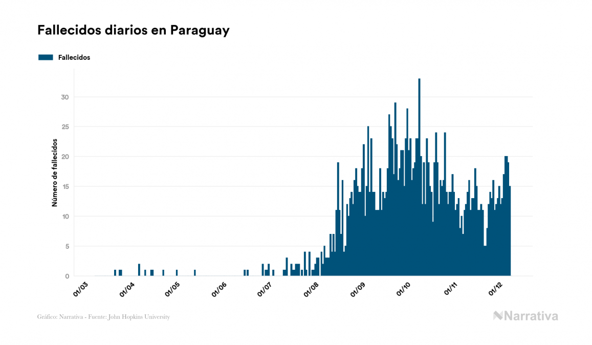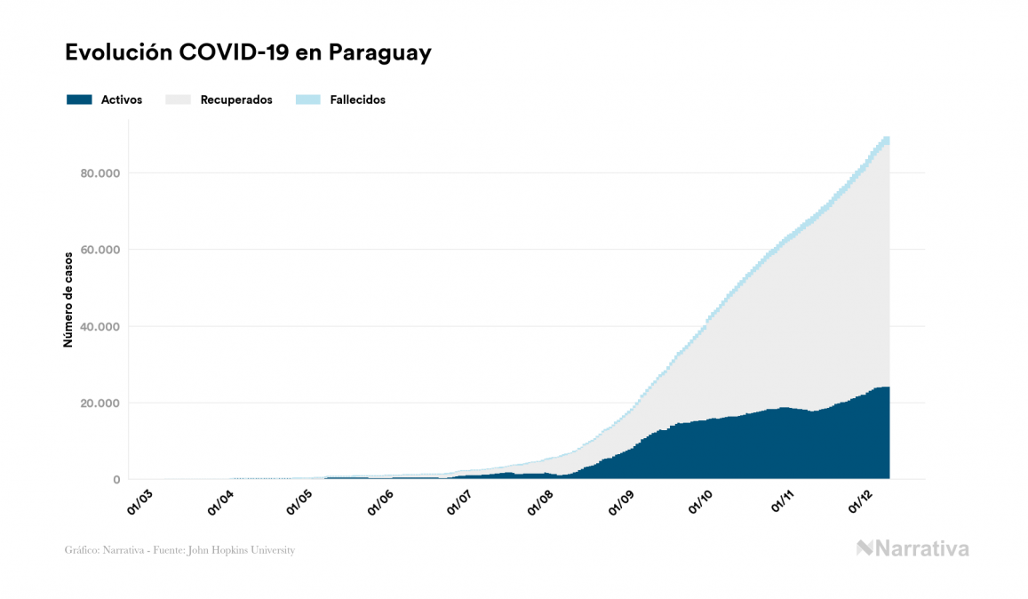 El coronavirus deja ya 89.421 casos de contagio en Paraguay, con 24.291 de ellos actualmente activos y 1.887 fallecidos, según los últimos datos correspondientes al 9 de diciembre. Además, un total de 63.243 personas ya se ha recuperado desde que se produjo el primer contagio en el país.