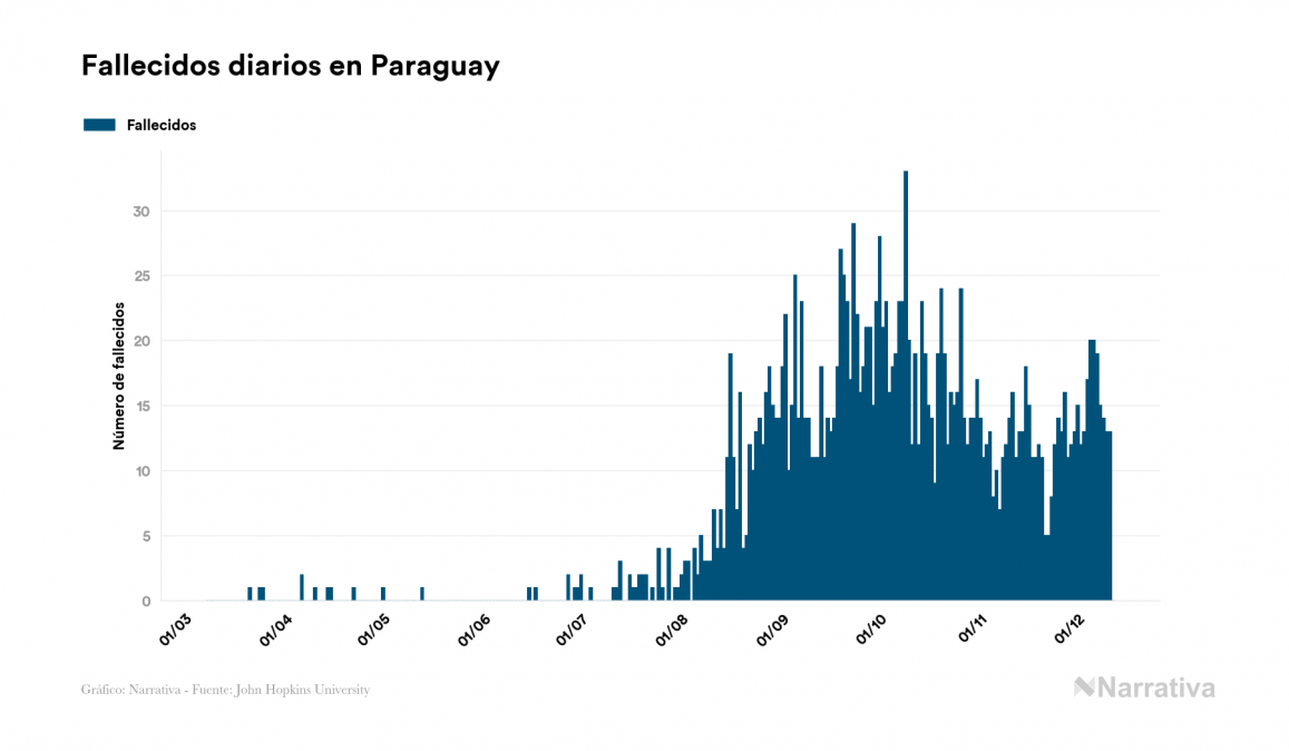 El nuevo coronavirus deja ya 92.113 casos de contagio en Paraguay, con 25.010 de ellos actualmente activos y 1.927 fallecidos, según los últimos datos correspondientes al 12 de diciembre. Además, un total de 65.176 personas ya se ha recuperado desde que se produjo el primer contagio en el país.