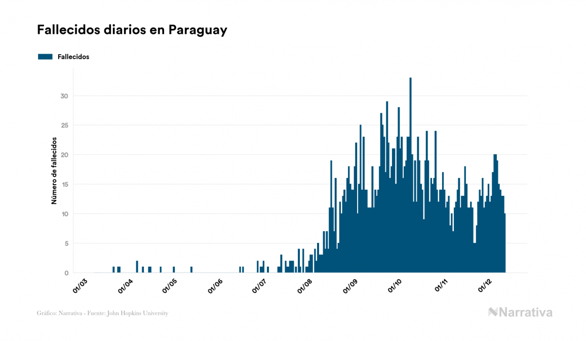 El nuevo coronavirus deja ya 92.913 casos de contagio en Paraguay, con 25.124 de ellos actualmente activos y 1.937 fallecidos, según los últimos datos correspondientes al 13 de diciembre. Además, un total de 65.852 personas ya se ha recuperado desde que se produjo el primer contagio en el país.