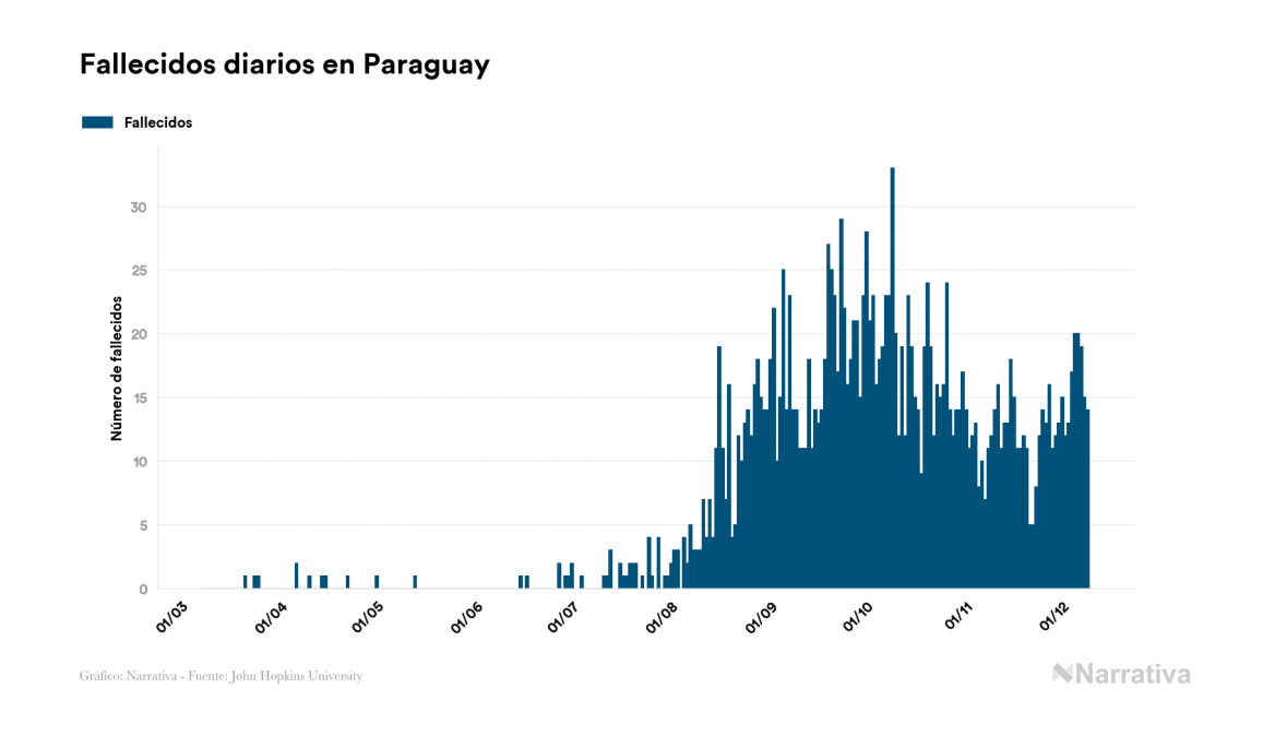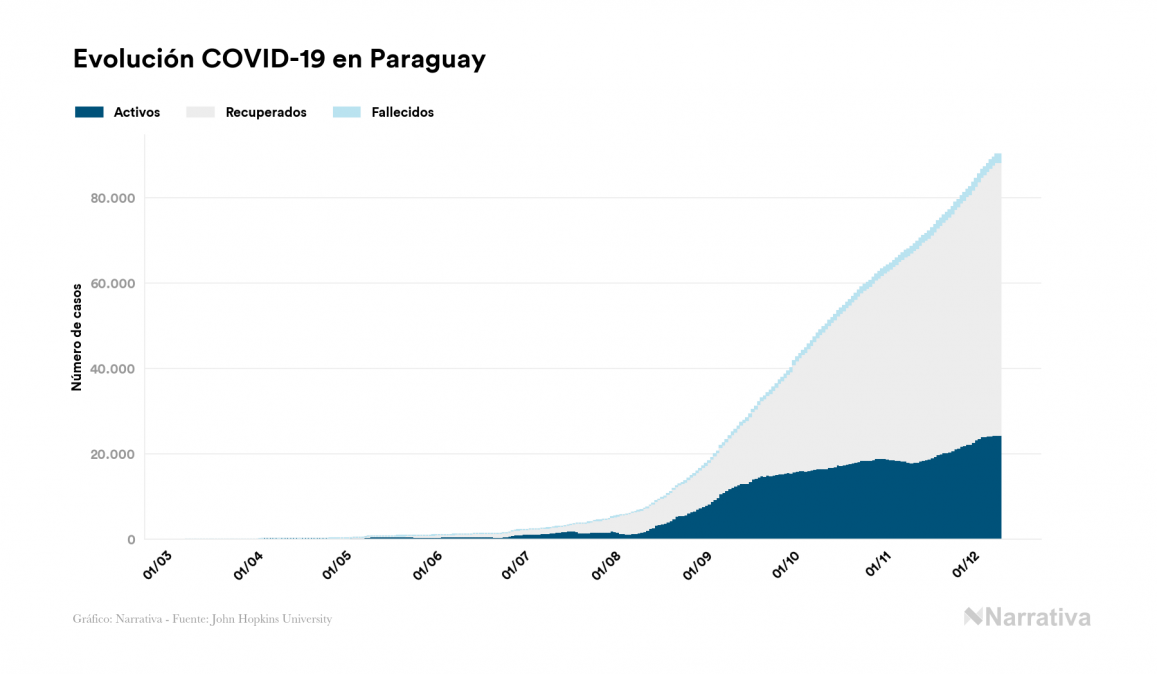 El nuevo coronavirus deja ya 90.146 casos de contagio en Paraguay, con 24.354 de ellos actualmente activos y 1.901 fallecidos, según los últimos datos correspondientes al 10 de diciembre. Además, un total de 63.891 personas ya se ha recuperado desde que se produjo el primer contagio en el país.
