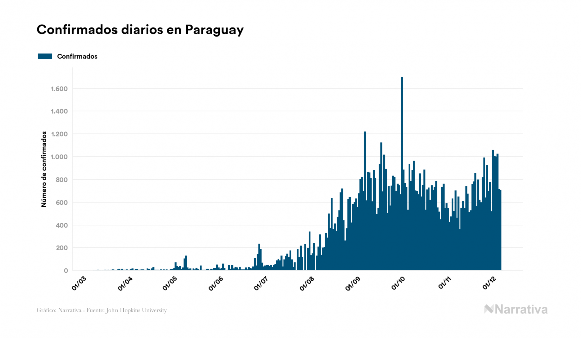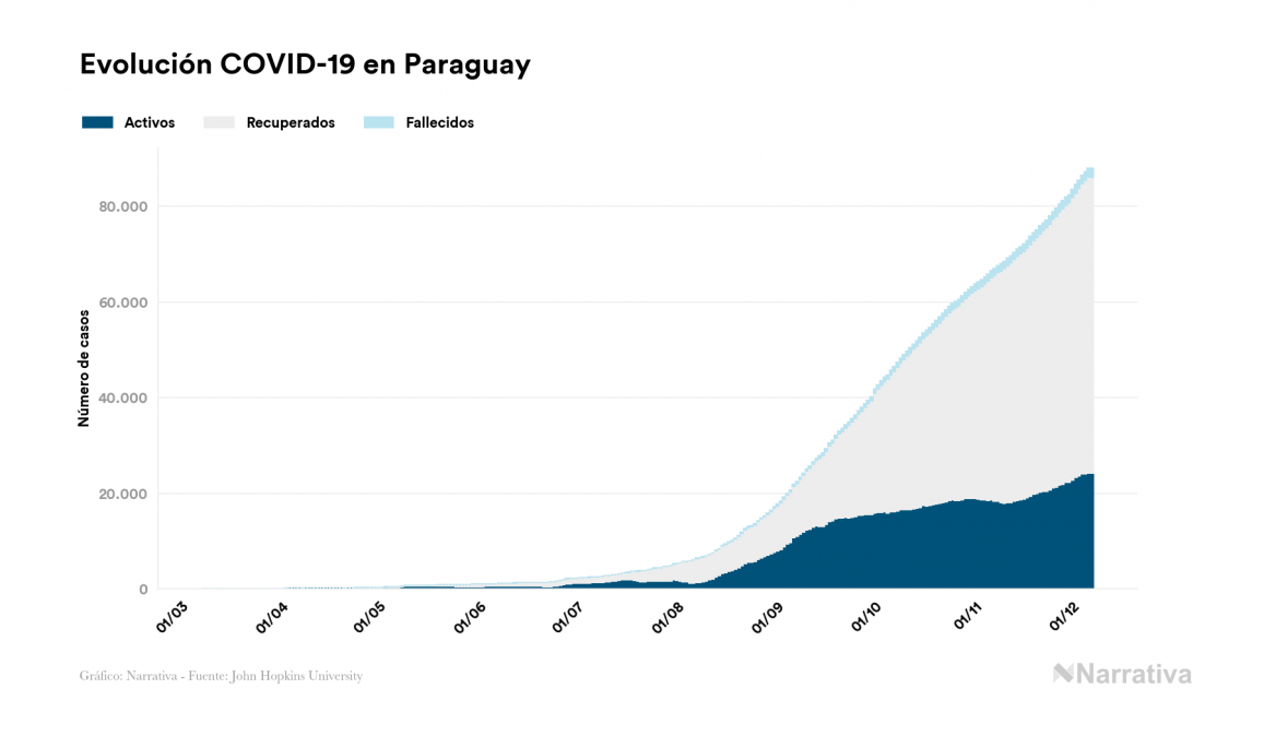 El coronavirus deja ya 87.920 casos de contagio en Paraguay, con 24.119 de ellos actualmente activos y 1.853 fallecidos, según los últimos datos correspondientes al 7 de diciembre. Además, un total de 61.948 personas ya se ha recuperado desde que se produjo el primer contagio en el país.