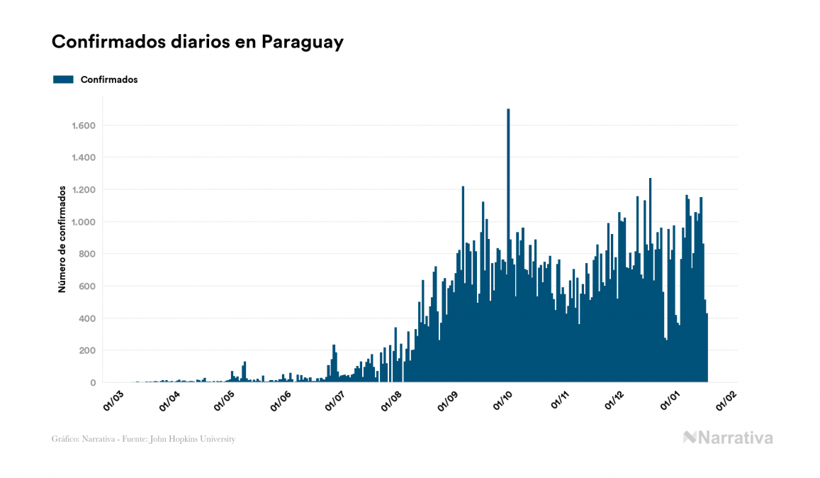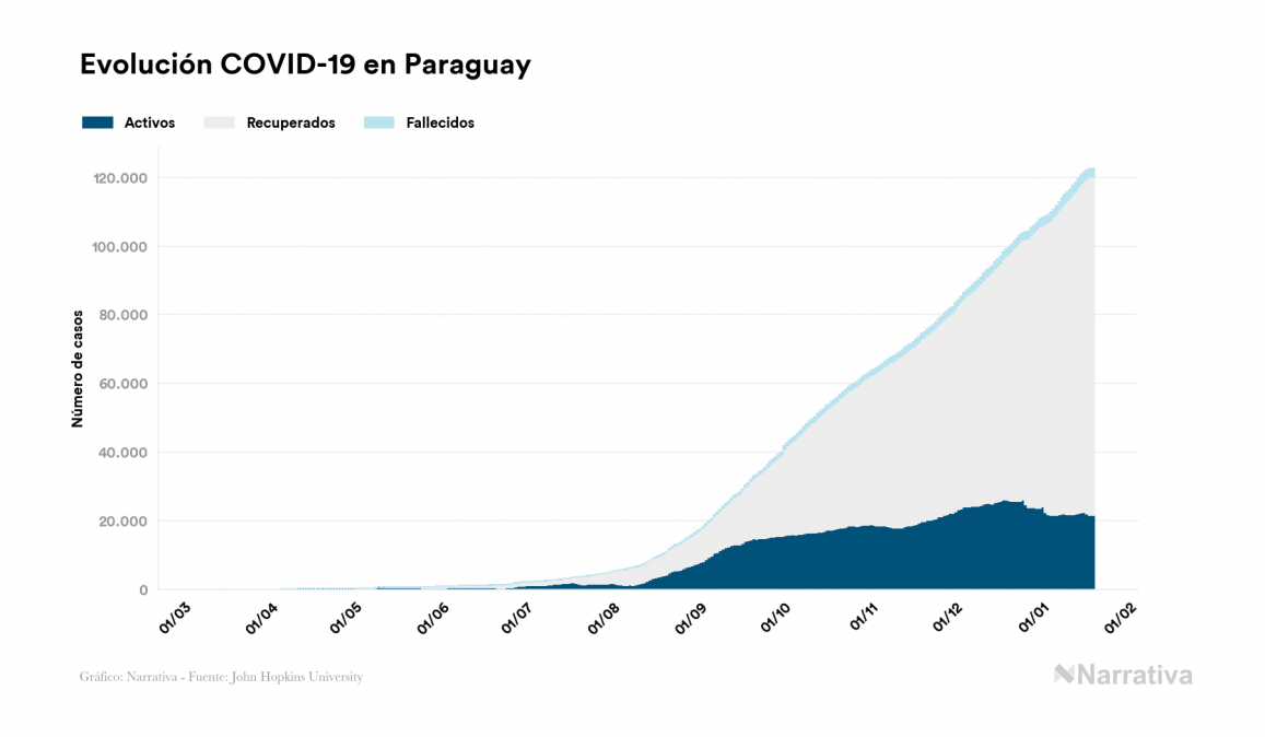 El coronavirus deja ya 122.588 casos de contagio en Paraguay, con 21.605 de ellos actualmente activos y 2.518 fallecidos, según los últimos datos correspondientes al 19 de enero. Además, un total de 98.465 personas ya se ha recuperado desde que se produjo el primer contagio en el país.