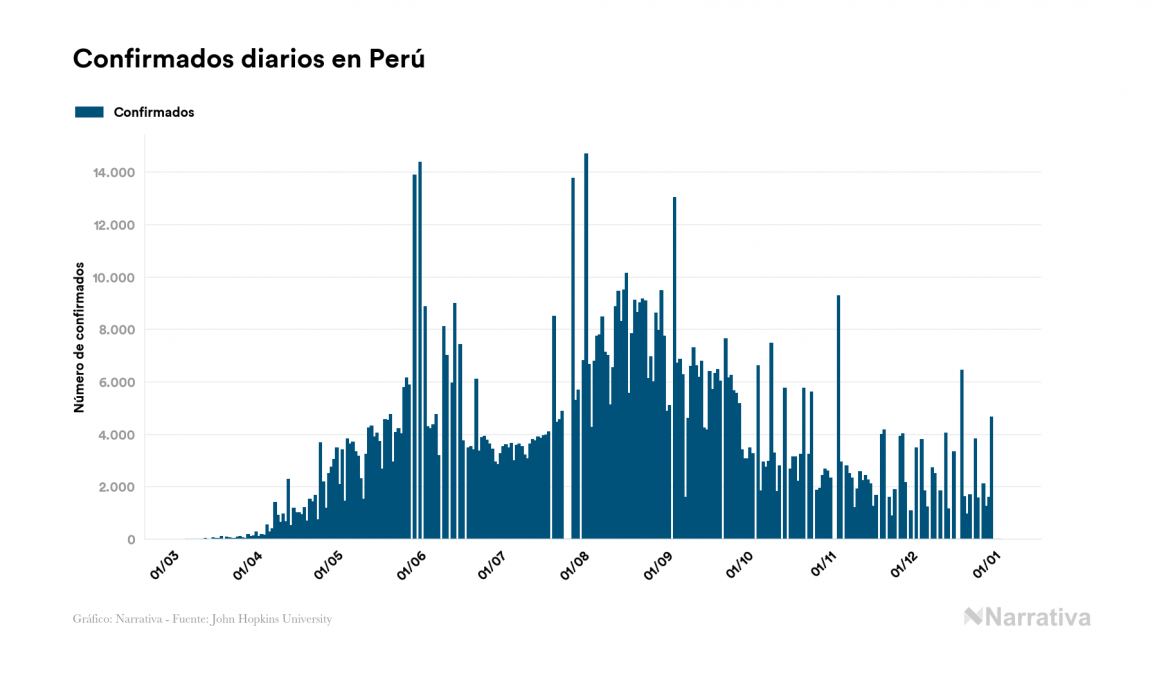 El nuevo coronavirus deja ya 1.015.137 casos de contagio en Perú, con 26.139 de ellos actualmente activos y 37.680 fallecidos, según los últimos datos correspondientes al 3 de enero. Además, un total de 951.318 personas ya se ha recuperado desde que se produjo el primer contagio en el país.