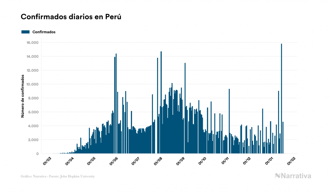 La COVID-19 deja ya 1.060.567 casos de contagio en Perú, con 37.071 de ellos actualmente activos y 38.770 fallecidos, según los últimos datos correspondientes al 20 de enero. Además, un total de 984.726 personas ya se ha recuperado desde que se produjo el primer contagio en el país.