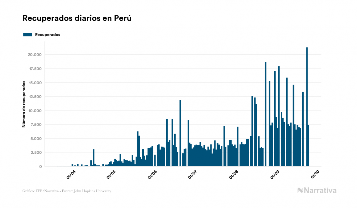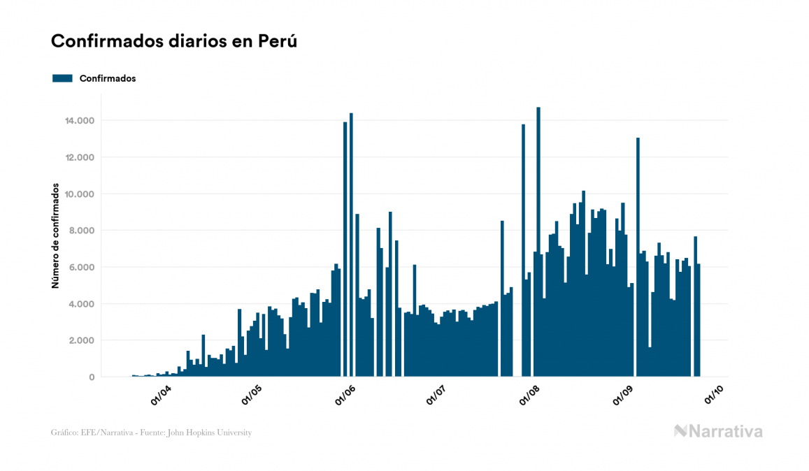 Según los últimos datos, Perú continúa con 114.336 casos activos de COVID-19 tras confirmarse 6.149 nuevos positivos y 7.395 altas médicas este jueves. Desde el comienzo de la pandemia, la cifra total de contagiados asciende a 782.695, con 636.489 recuperados y 31.870 fallecidos.