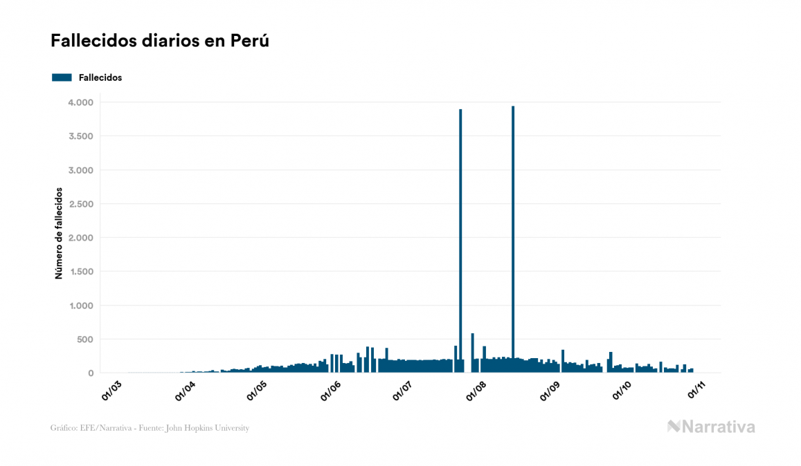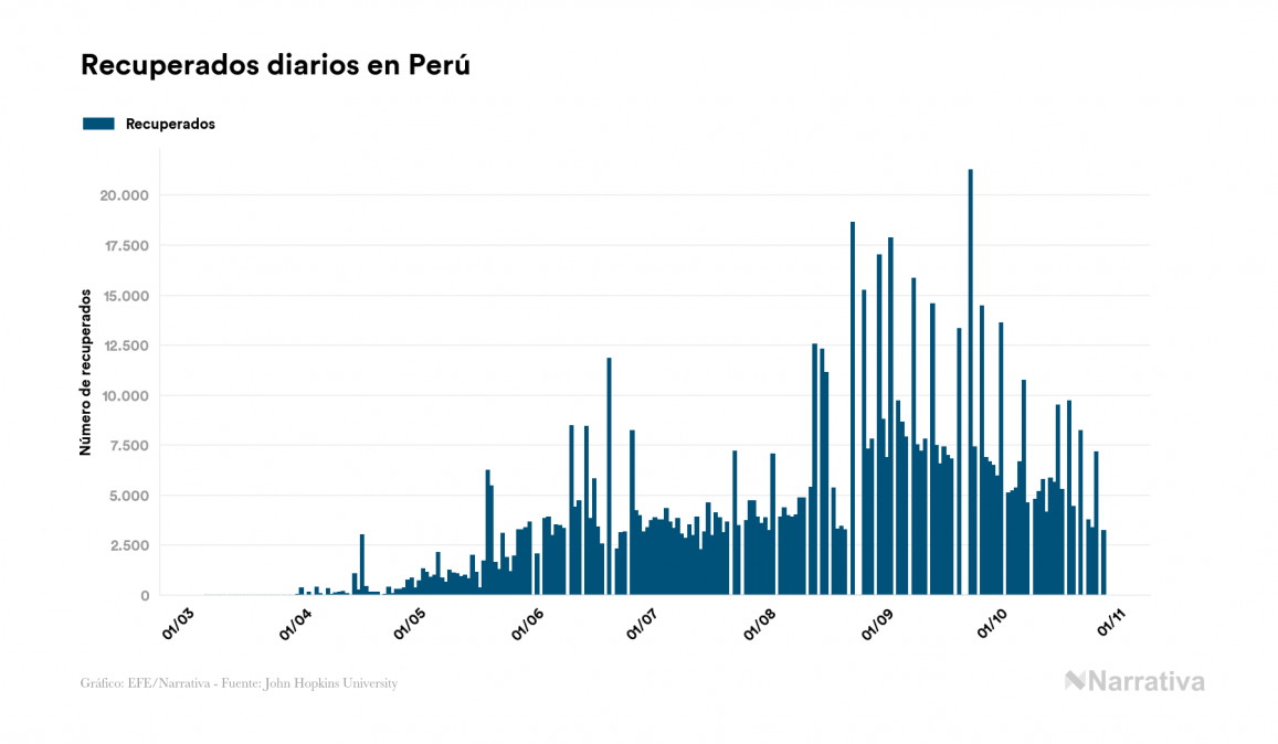 Según los últimos datos, actualmente en Perú hay 44.036 casos activos de COVID-19 tras confirmarse 1.923 nuevos positivos y 3.209 altas médicas este miércoles. Desde el comienzo de la pandemia, la cifra total de contagiados asciende a 892.497, con 814.204 recuperados y 34.257 fallecidos.
