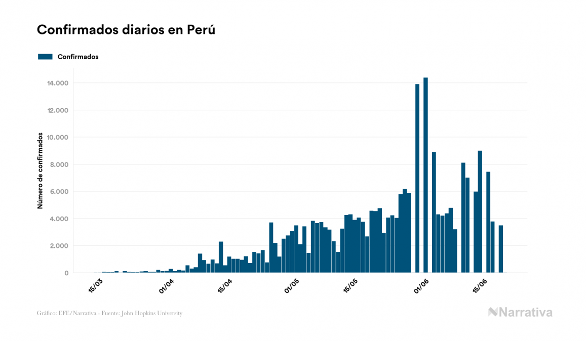 El nuevo coronavirus deja ya 244.388 casos de contagio en Perú, con 105.737 de ellos actualmente activos y 7.461 fallecidos, según los últimos datos correspondientes al 20 de junio. Además, un total de 131.190 personas ya se ha recuperado desde que se produjo el primer contagio en el país.