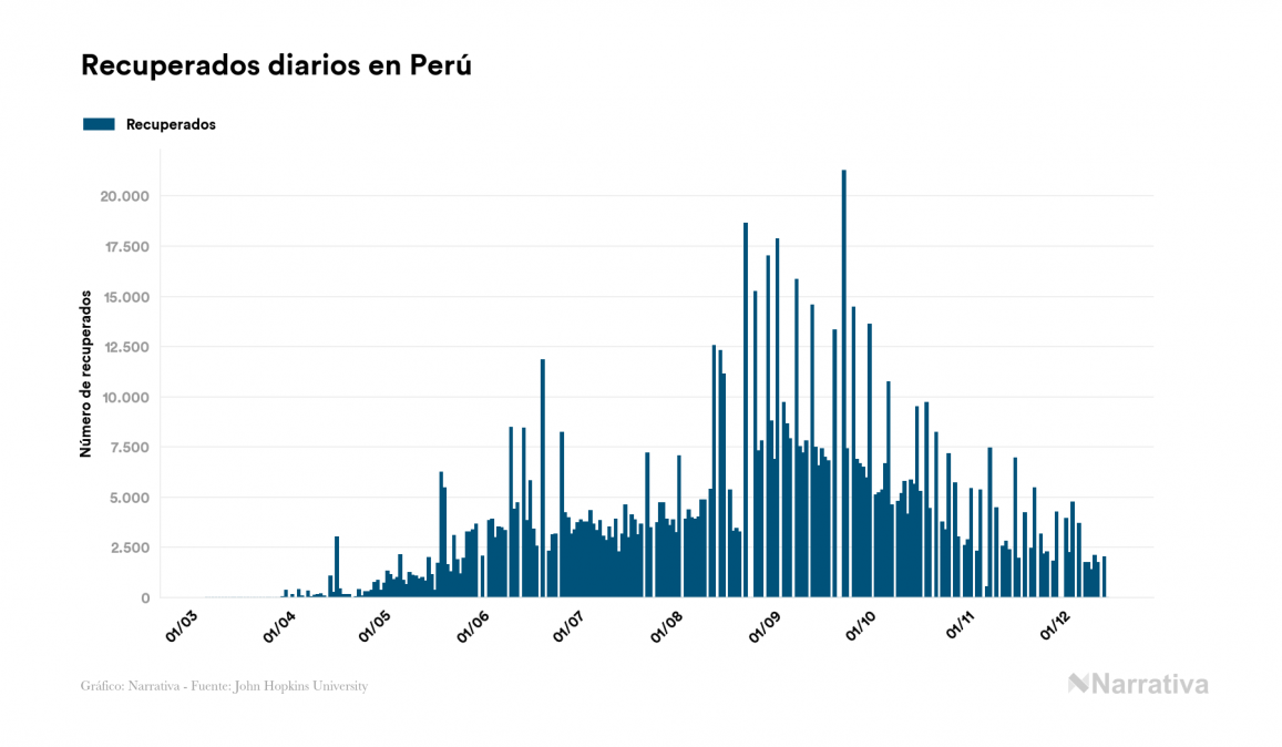 El nuevo coronavirus deja ya 984.973 casos de contagio en Perú, con 29.944 de ellos actualmente activos y 36.677 fallecidos, según los últimos datos correspondientes al 15 de diciembre. Además, un total de 918.352 personas ya se ha recuperado desde que se produjo el primer contagio en el país.