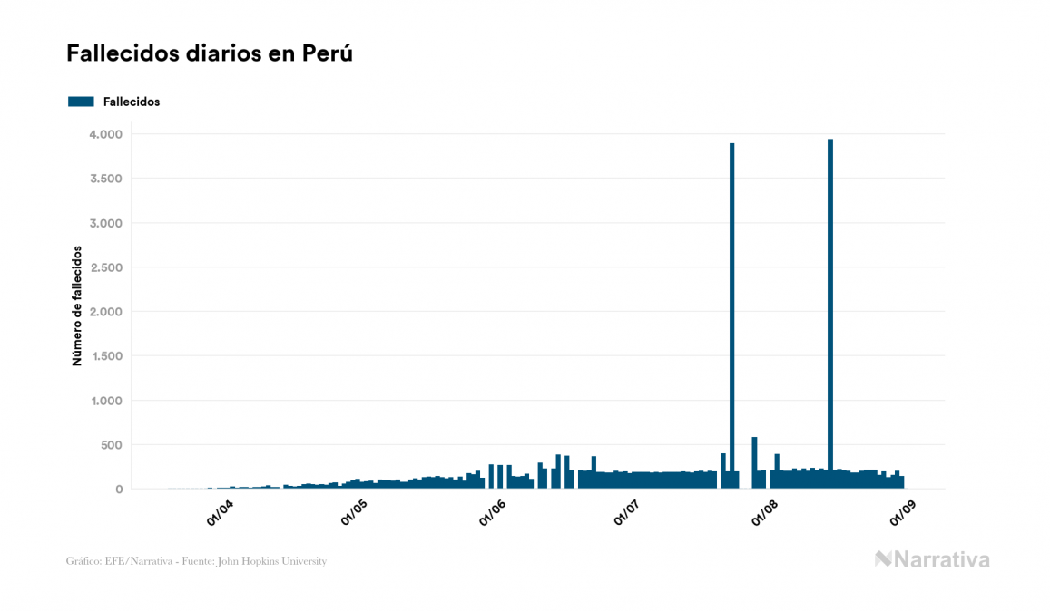 El coronavirus deja ya 639.435 casos de contagio en Perú, con 164.153 de ellos actualmente activos y 28.607 fallecidos, según los últimos datos correspondientes al 31 de agosto. Además, un total de 446.675 personas ya se ha recuperado desde que se produjo el primer contagio en el país.