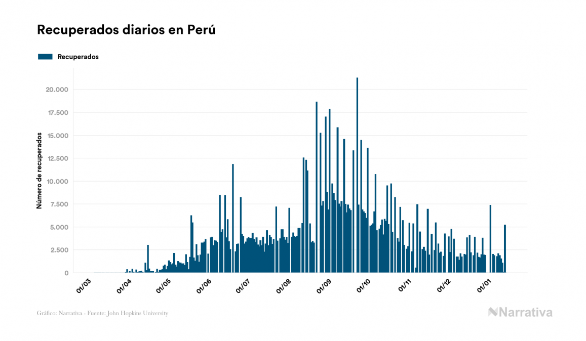 Según los últimos datos, actualmente en Perú hay 33.896 casos activos de coronavirus tras confirmarse 8.431 nuevos positivos este viernes. Desde el comienzo de la pandemia, el número total de contagiados asciende a 1.048.662, con 976.202 recuperados y 38.564 fallecidos.