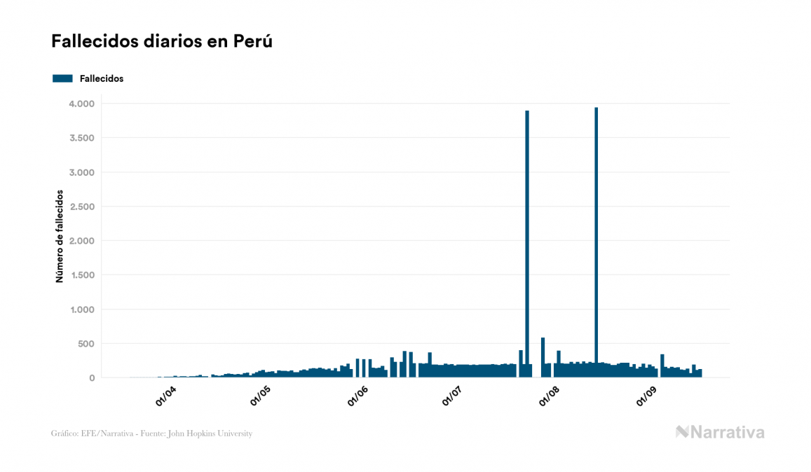 Perú reporta 4.160 nuevos casos de coronavirus y alcanza los 738.020 contagiados