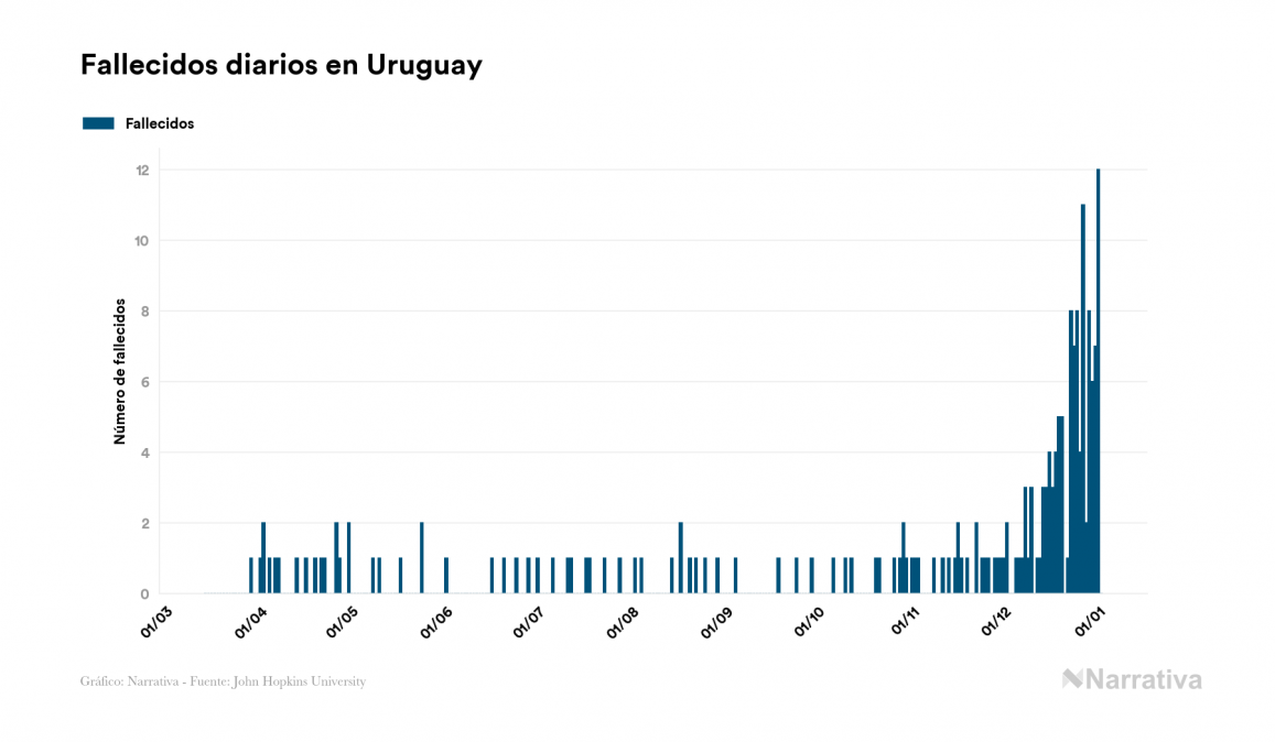 La COVID-19 deja ya 19.753 casos de contagio en Uruguay, con 5.570 de ellos actualmente activos y 193 fallecidos, según los últimos datos correspondientes al 2 de enero. Además, un total de 13.990 personas ya se ha recuperado desde que se produjo el primer contagio en el país.