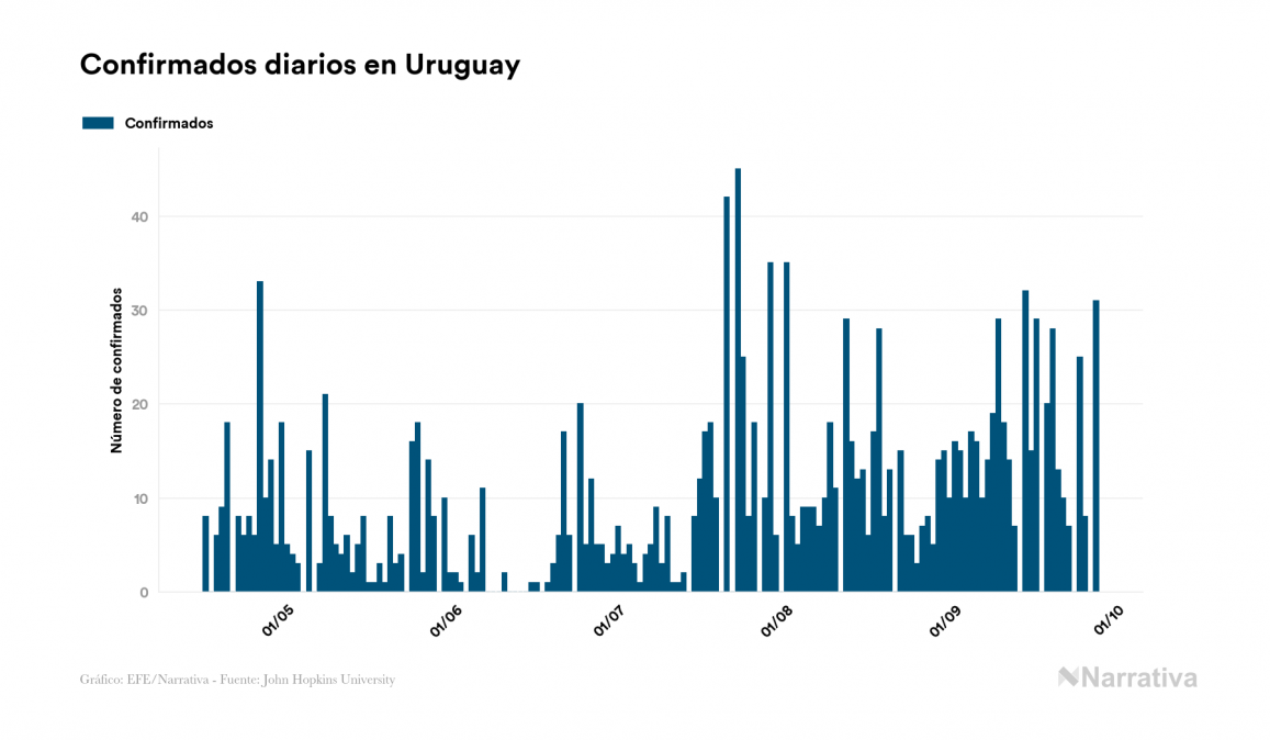 Uruguay alcanza los 1.998 contagiados tras registrar 31 nuevos casos en el último día
