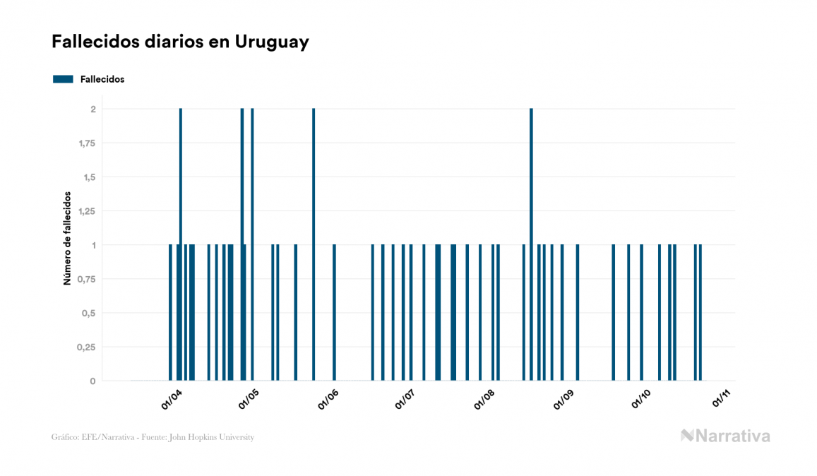 Uruguay logra un día sin muertos por la enfermedad COVID-19