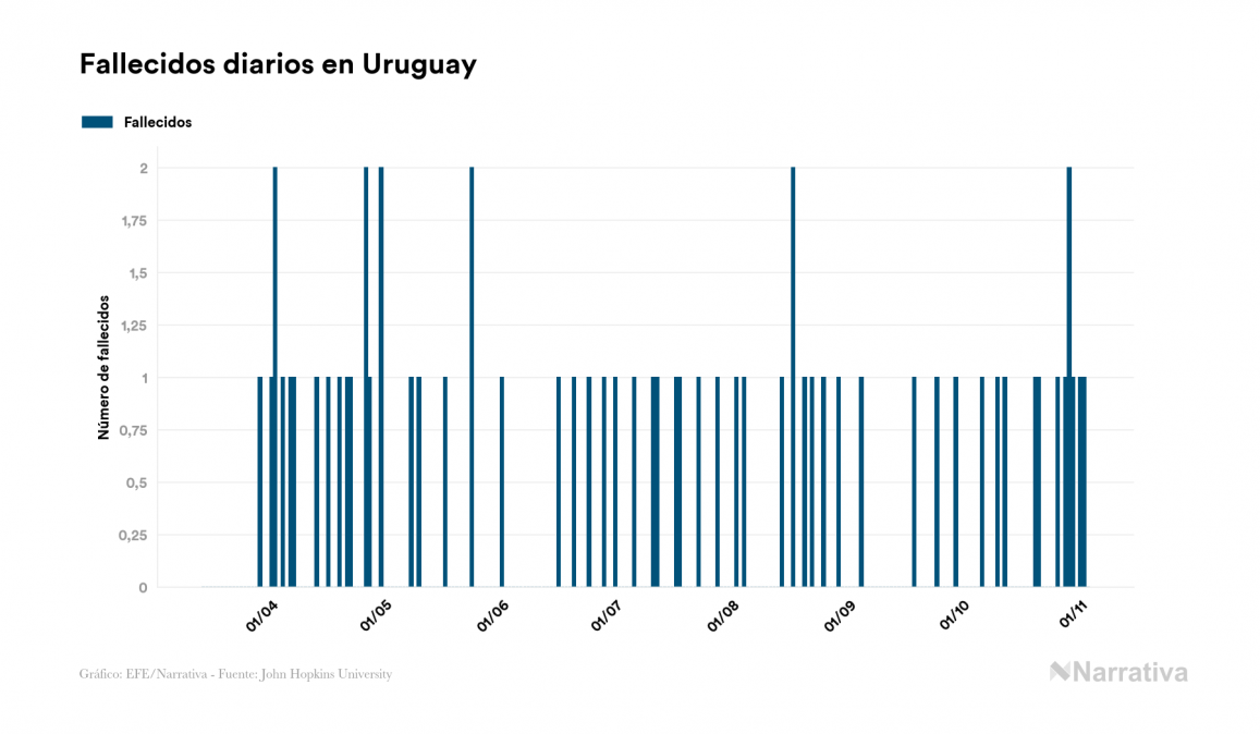 Uruguay no registra ninguna muerte por COVID-19 en el último día