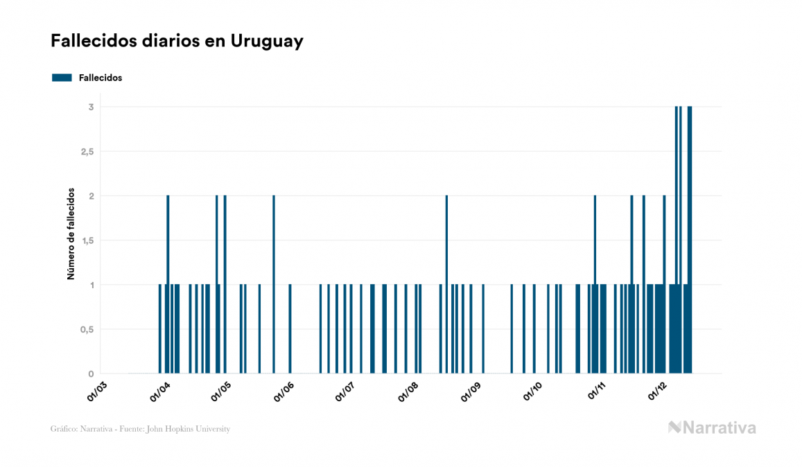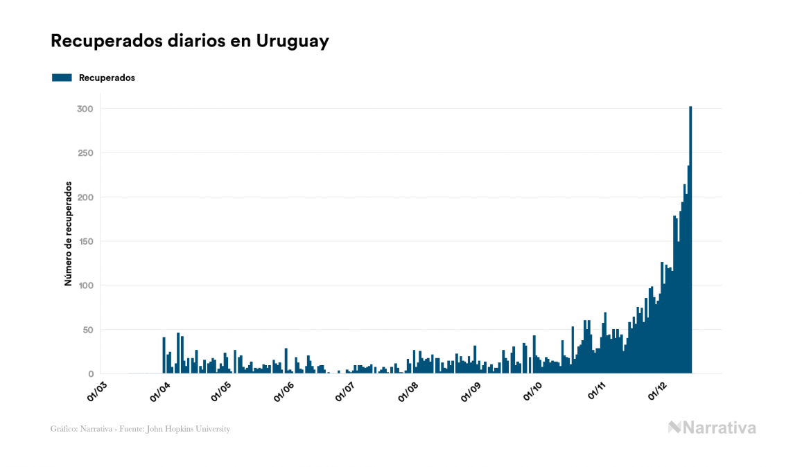 El nuevo coronavirus deja ya 10.418 casos de contagio en Uruguay, con 3.425 de ellos actualmente activos y 98 fallecidos, según los últimos datos correspondientes al 16 de diciembre. Además, un total de 6.895 personas ya se ha recuperado desde que se produjo el primer contagio en el país.