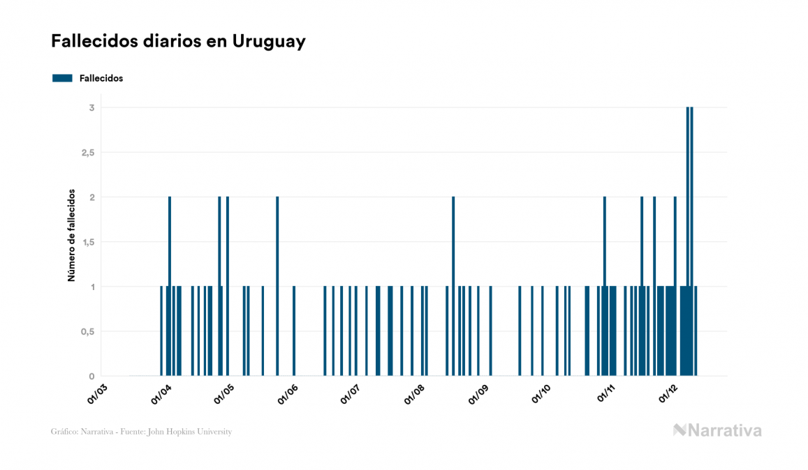 El nuevo coronavirus deja ya 9.180 casos de contagio en Uruguay, con 2.934 de ellos actualmente activos y 91 fallecidos, según los últimos datos correspondientes al 13 de diciembre. Además, un total de 6.155 personas ya se ha recuperado desde que se produjo el primer contagio en el país.
